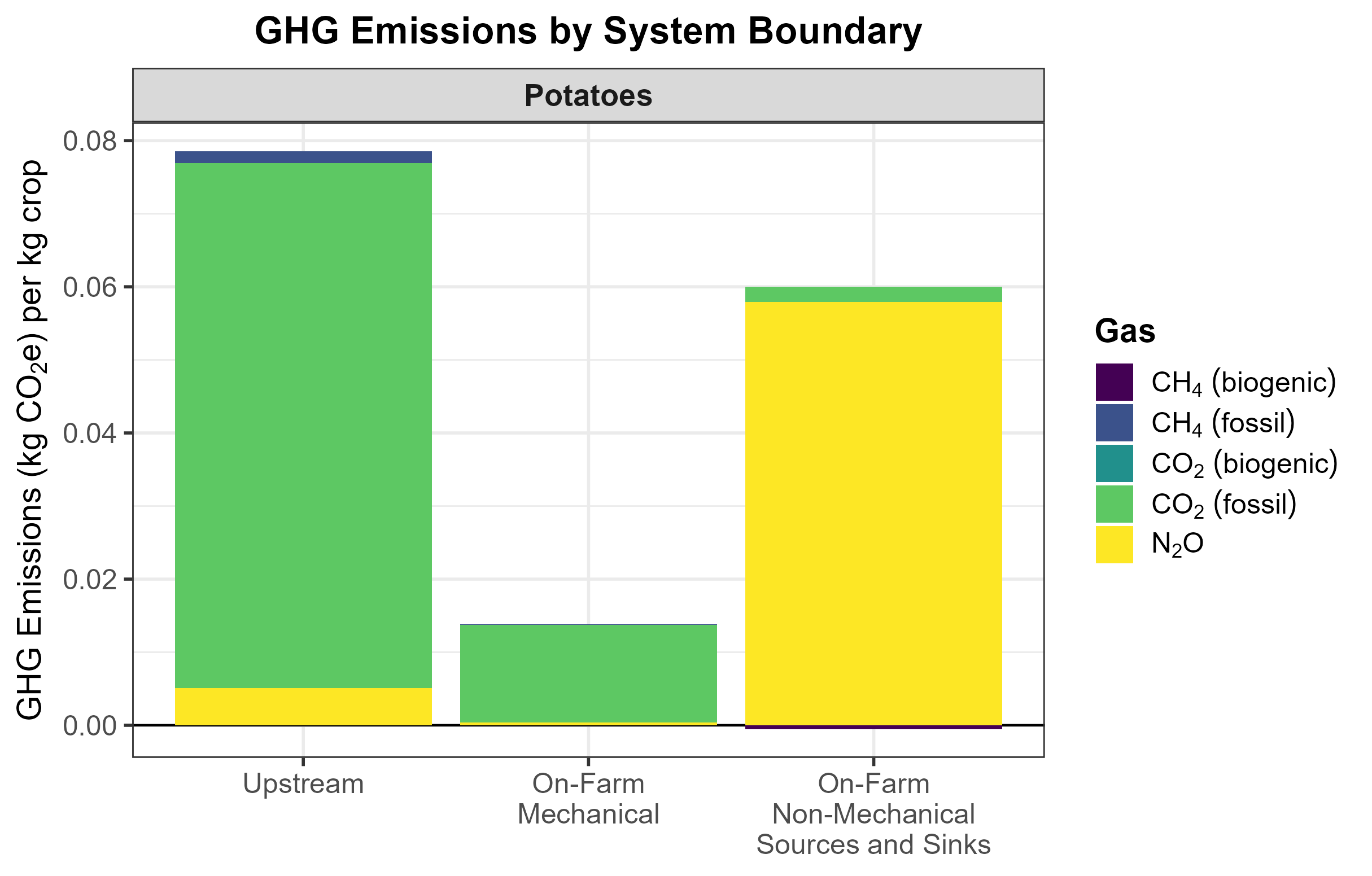 - The aggregated estimate is 0.15 kg CO2e/kg potatoes.