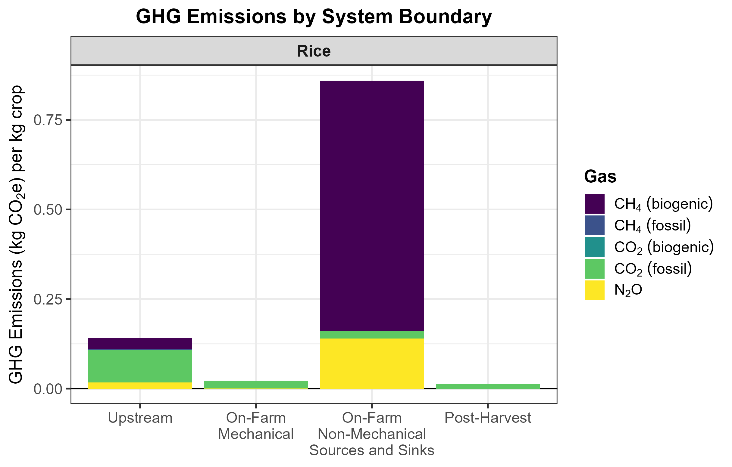 - The aggregated estimate is 1.06 kg CO2e/kg rice.