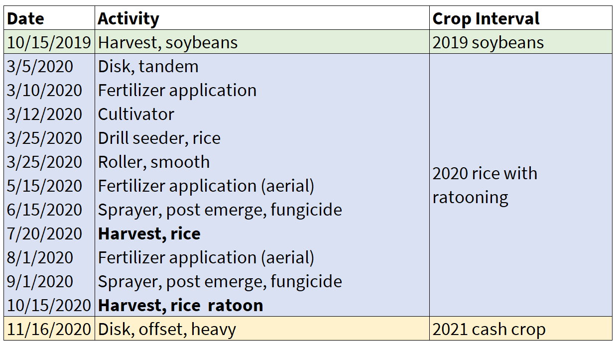 - 2020 rice with ratooning: 10/16/2019 to 10/15/2020